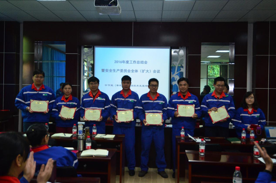 2017年1月22日,中節(jié)能(攀枝花)清潔技術(shù)發(fā)展有限公司召開了2016年度工作總結(jié)會(huì)暨安全生產(chǎn)委員會(huì)全體擴(kuò)大會(huì)。會(huì)議傳達(dá)了上級(jí)公司關(guān)于安全生產(chǎn)工作的有關(guān)精神,宣貫了“安全九條禁令”和關(guān)于安全、環(huán)保刑事犯罪“兩高”司法解釋。各部門負(fù)責(zé)人分別與公司簽訂了《2017年安全環(huán)保目標(biāo)責(zé)任書》,中層以上管理人員及核心崗位人員分別與公司簽訂了《廉潔從業(yè)責(zé)任書》。會(huì)議宣讀了中國環(huán)境保護(hù)集團(tuán)公司、中節(jié)能清潔技術(shù)發(fā)展有限公司關(guān)于表彰2016年度先進(jìn)集體和先進(jìn)個(gè)人的決定,宣讀了攀枝花公司表彰2016年度先進(jìn)個(gè)人決定,對(duì)獲得表彰的先進(jìn)班組和先進(jìn)個(gè)人頒發(fā)了榮譽(yù)證書。
