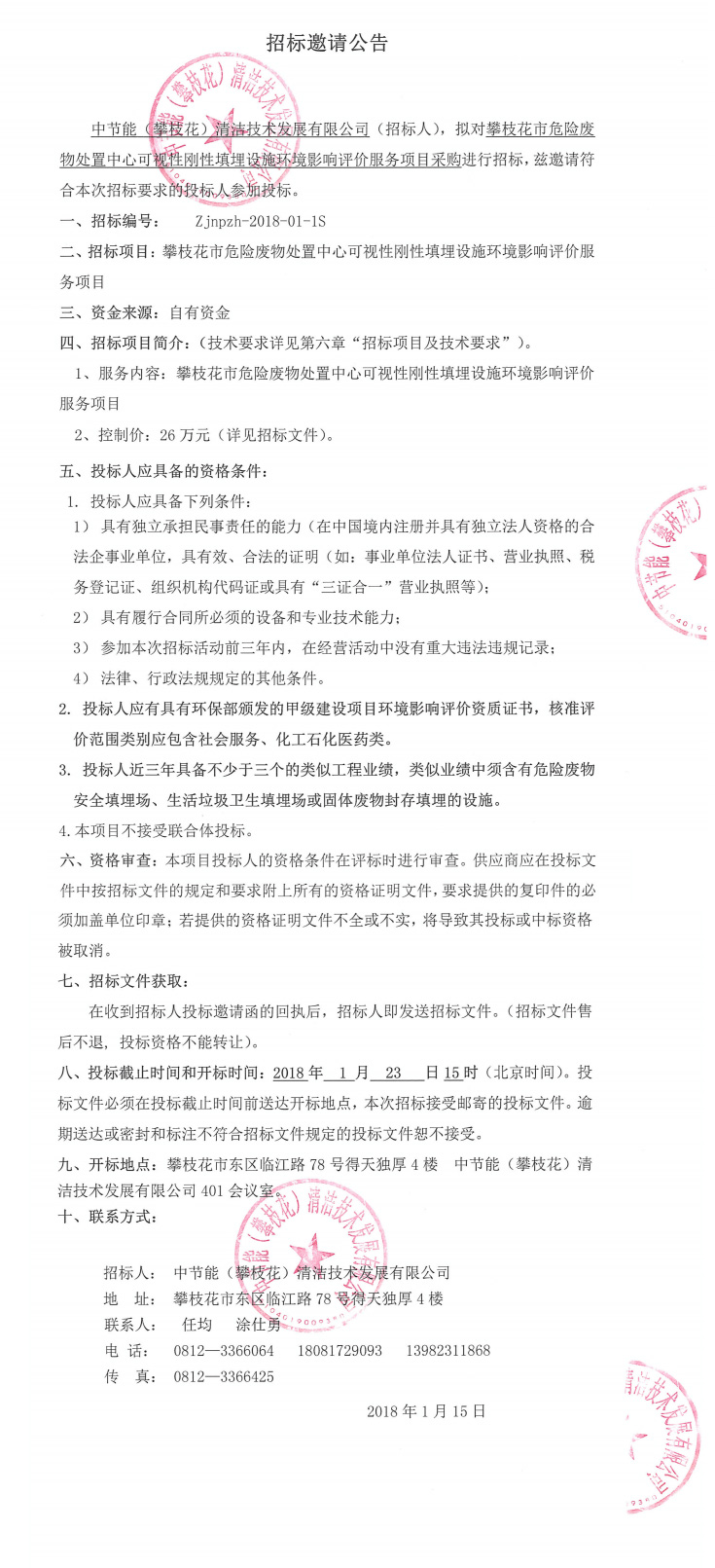 攀枝花市危險廢物處置中心可視性剛性填埋設施環(huán)境影響評價服務項目采購招標公示