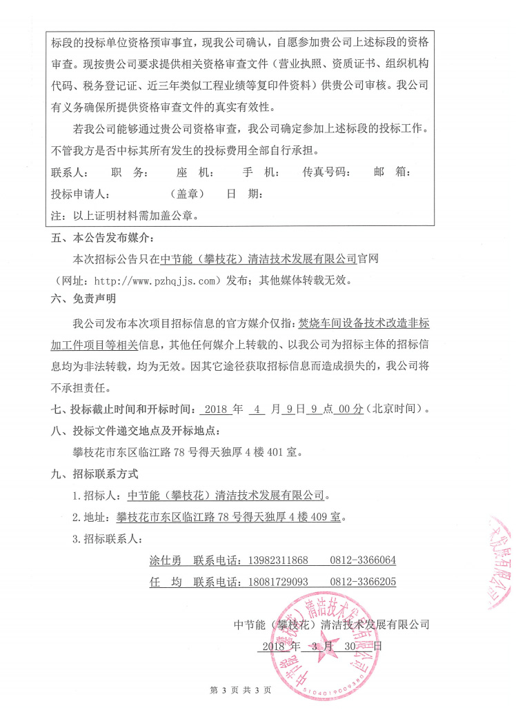 焚燒車間設(shè)備技術(shù)改造非標(biāo)加工件項目招標(biāo)公示