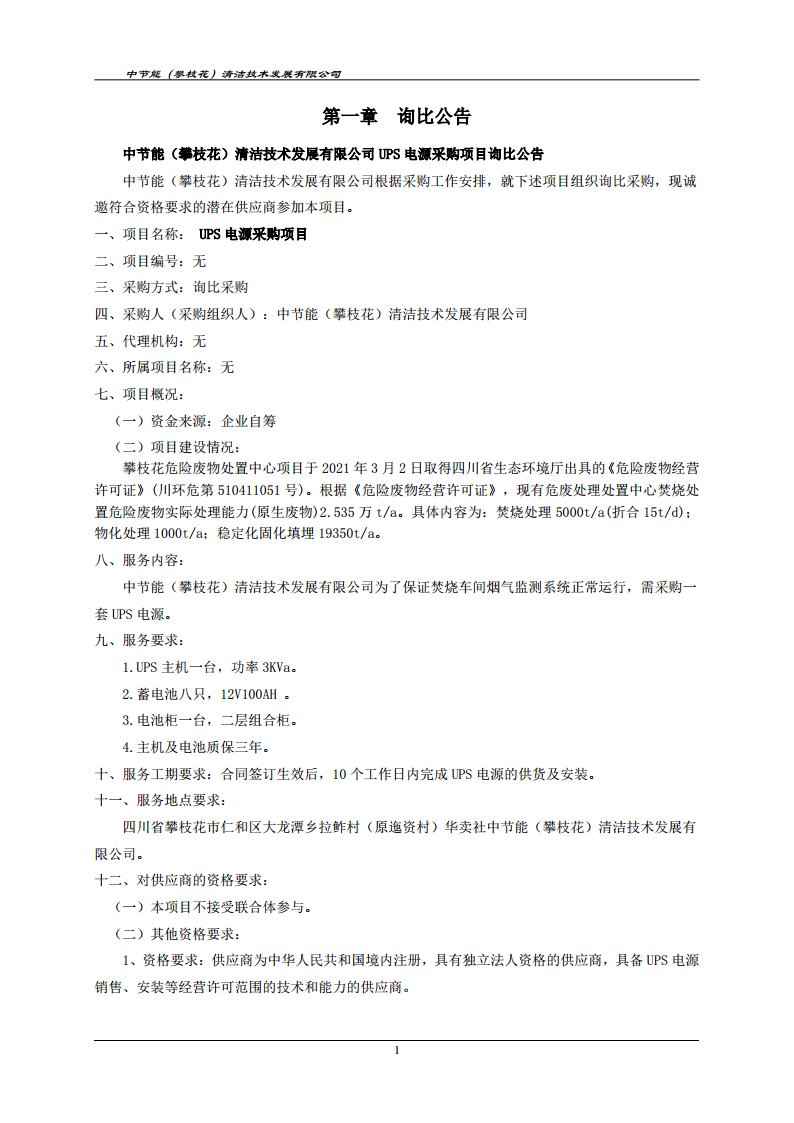 UPS電源采購(gòu)項(xiàng)目——詢比采購(gòu)文件